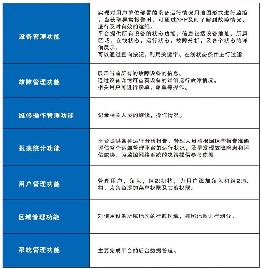 運(yùn)維管理平臺集成了電源管理、網(wǎng)絡(luò)交換機(jī)管理、機(jī)箱安防管理、機(jī)箱環(huán)境溫濕度管理、電源防雷及網(wǎng)絡(luò)防雷設(shè)施管理、箱外監(jiān)控設(shè)備管理等功能。為用戶提供全面高效的遠(yuǎn)端設(shè)備實(shí)時監(jiān)控功能、自動告警功能、自動重啟功能。能同時管理超過兩萬個以上箱體信息,有效解決目前大多數(shù)監(jiān)控機(jī)箱未聯(lián)網(wǎng)的“瓶頸”問題。該管理平臺通過故障聯(lián)動報警、故障流轉(zhuǎn)處理、統(tǒng)計報表等貼合用戶業(yè)務(wù)功能,實(shí)現(xiàn)無人值守、規(guī)范管理、量化考核的要求,更大限度減少各個監(jiān)控系統(tǒng)領(lǐng)域的運(yùn)營成本,提高整個城市的智能化水平,保障監(jiān)控系統(tǒng)穩(wěn)定安全可靠運(yùn)行,可全面實(shí)現(xiàn)提出的城市信息化戰(zhàn)略的目標(biāo)。